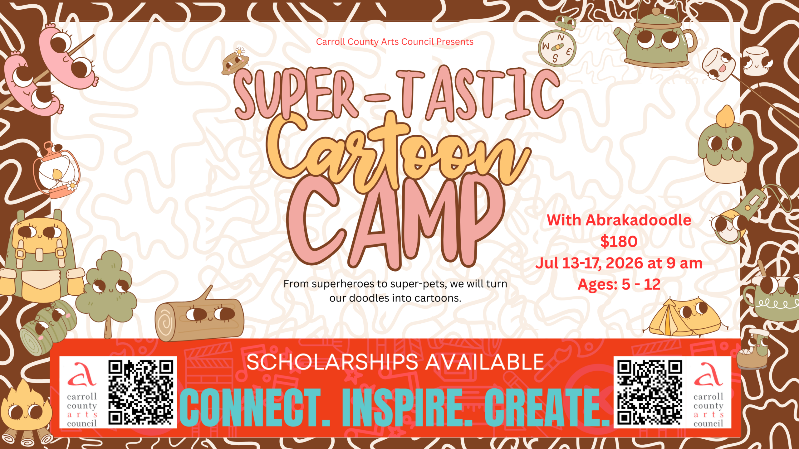 Carroll Arts CenterFrom superheroes to super-pets, we will turn our doodles into cartoons. Improve your skills and learn new ones while you create a comic strip, a graphic novel or a single-panel comic!