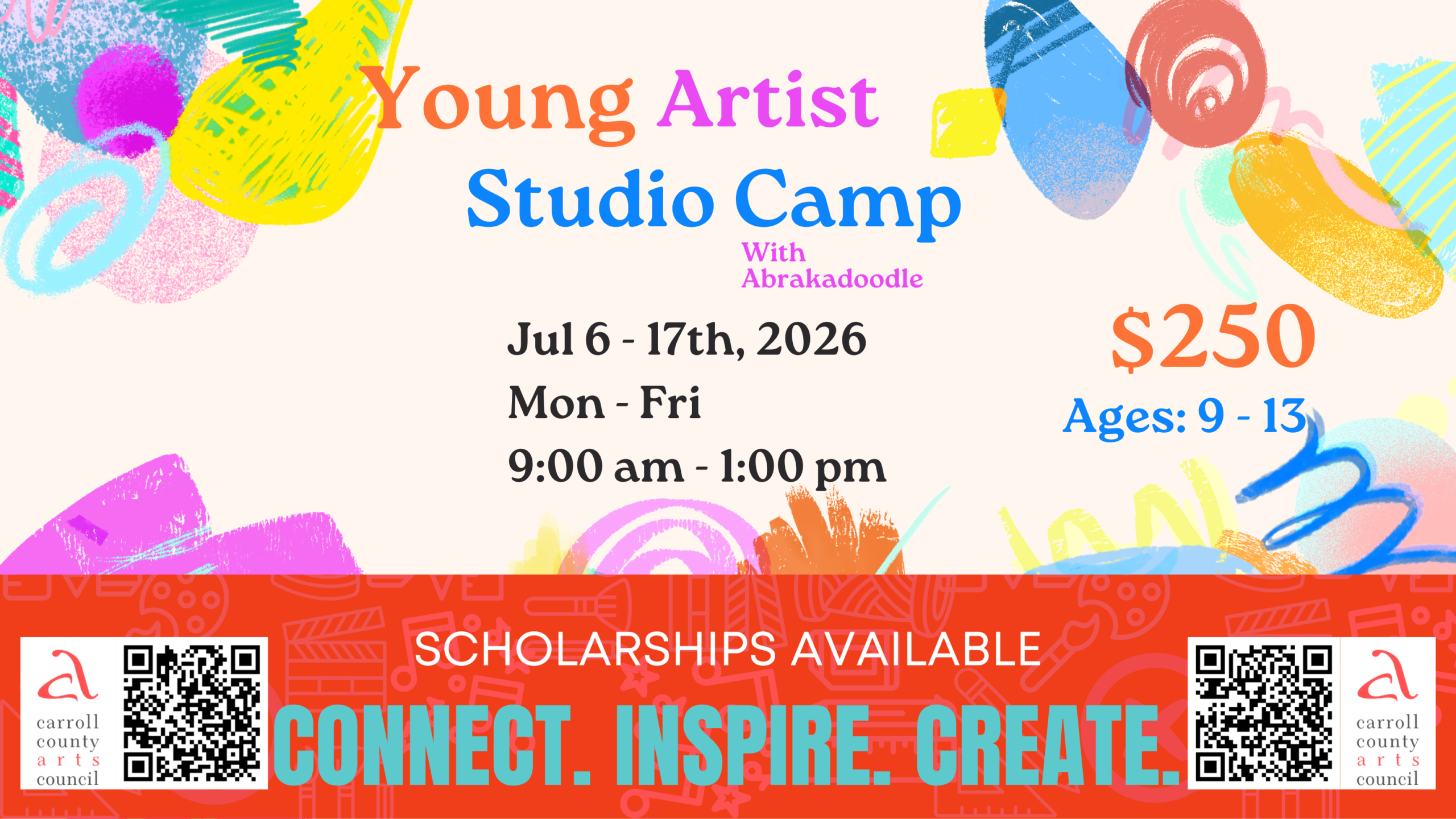 Carroll Arts CenterYoung Artist Studio Camp is a hands-on, creativity-filled experience designed for young artists to explore a wide variety of materials, techniques, and artistic styles in a supportive studio environment. Campers will experiment with drawing, painting, sculpture, mixed media, and more while learning foundational art concepts such as color theory, texture, composition, and creative problem-solving.