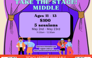 Take the Stage! Weekly Drama Class, Spring Session, with Lora Strosnider This drama class is designed to boost students self-esteem and explore their creativity without the pressure of learning lines. The young actors-to-be will learn basic theatre skills, public [...]